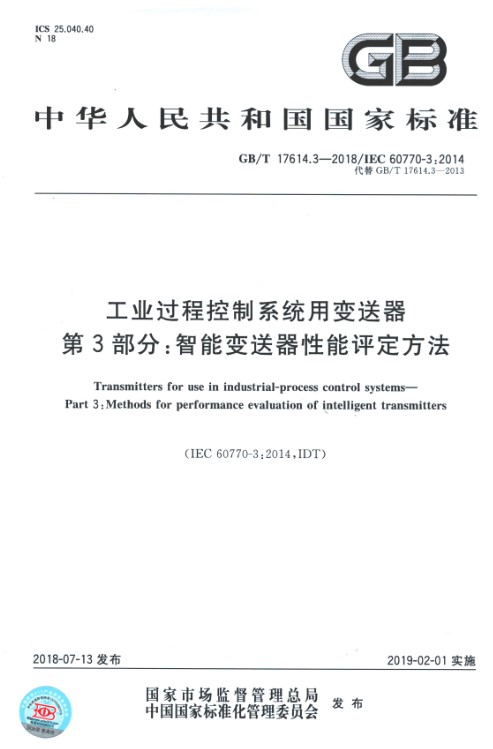 随着科学技术的不断进步与发展,行业标准的重要性正日趋凸显,目前我国变送器相关的现行国家标准也在不断完善中。2月1日,由中国机械工业联合会提出,全国工业过程测量控制和自动化标准化技术委员会(SAC/TC 124)归口的GB/T 17614.3-2018 《工业过程控制系统用变送器第3部分:智能变送器性能评定方法》正式开始实施。