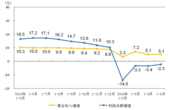 1—5月份,采矿业实现利润总额2311.2亿元,同比增长4.7%;制造业实现利润总额19519.4亿元,下降4.1%;电力、热力、燃气及水生产和供应业实现利润总额1959.6亿元,增长9.6%。
