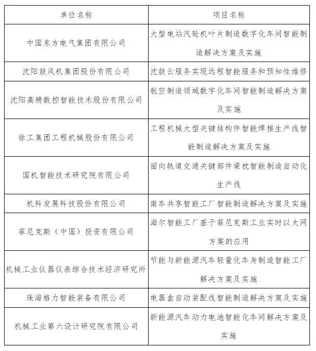 智能制造标杆企业(第一批)名单(排名不分先后)