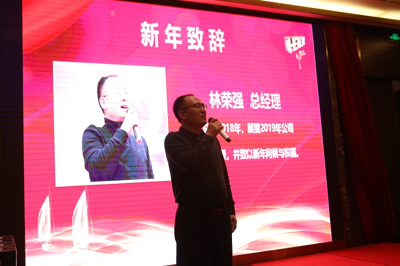 颁奖过后,由公司总经理林荣强作精彩致辞并向现场的来宾及全体人员致以新年贺词,送上了最诚挚的祝福,现场掌声雷动。
