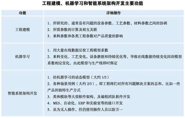 首先需要对一系列待研究的工程问题或工程参数建立模型,这就需要对工艺、产品、设备和自动化等工程领域极为熟悉;其次,需要采集高质量的在线数据,并基于此数据对工程模型进行机器学习,使之与生产线充分绑定。然后建立智能系统,将生产线的模型和大量的场景用例结合到智能系统中,并产生出即时可变的最优化的生产参数组合,交给基础自动化执行。
