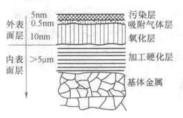 金属表面预处理是金属加工领域中至关重要的环节。不仅影响着制品的外观和质感,更直接关系到产品的性能、寿命以及应用范围。金属表面预处理的目的在于保证表面平整和清除表面附着物,增强金属表面结合力和附着力,例如:金属工件在加工、运输、存放过程中,表面带有氧化皮、铁锈、焊渣、尘土以及油脂和其他污物。对表面进行电镀、喷塑、涂装等表面处理,要先进行表面预处理;否则,不仅影响覆层与金属基体的结合力和耐蚀性,而且还会使金属在有覆层防护下继续腐蚀,进而使覆层剥落,影响金属工件的力学性能和使用寿命。金属表面结构如图1-1所示和金属在工业环境被污染的表面如图1-2所示: