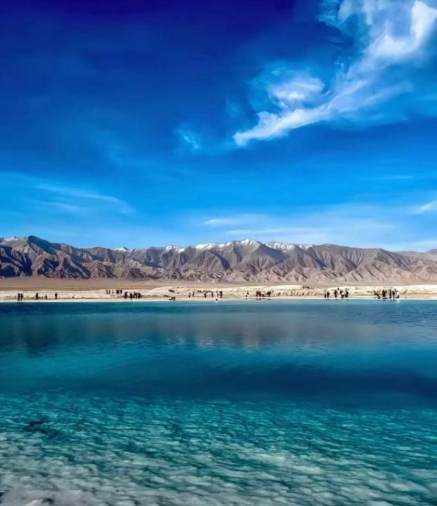 “云朵掉进盐湖里,天空和大地相爱,是风都吹不散的浪漫。”